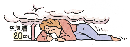 煙の中を避難する場(chǎng)合は、ハンカチやタオルを口に當(dāng)て、背を低くし、這うようにして煙を吸わないようにします。空気があるのは床上20cm程度です。