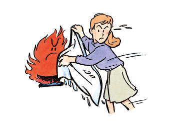 空気を遮斷して消火する方法。ふきんやタオル、シーツなどを水でぬらして火の上からかける、または毛布、布団などをかぶせて上から水をかけます。