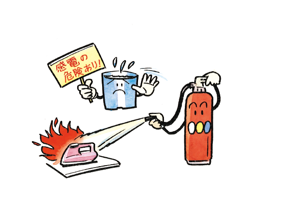 初期消火の決め手になる消火器。火災(zāi)の種類に応じて3つのタイプがあります。