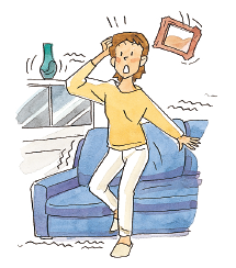 【家具の前倒れや落下物を予防するように、普段から注意。】