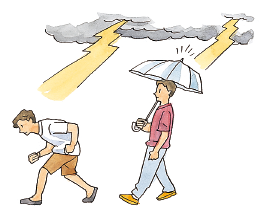 雷雨時(shí)にはなるべく姿勢(shì)を低くして避難します。金屬は身につけていても大丈夫ですが、所持品が頭より高く突き出ないように注意しましょう。傘をさすのも厳禁です。