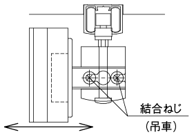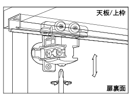 吊車(chē)と吊ヒンジの位置で扉の前後を調(diào)整します。吊車(chē)の結(jié)合ネジを締めて扉の位置を調(diào)整後、ネジを締め固定します。