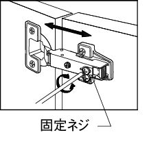 固定ネジをゆるめて丁番本體を前後調(diào)整します。(前後調(diào)整量±2mm)