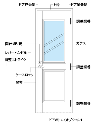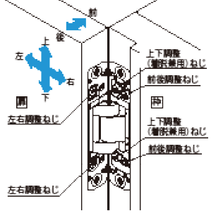 - ※調整方向は扉を閉めた狀態での方向を示します。