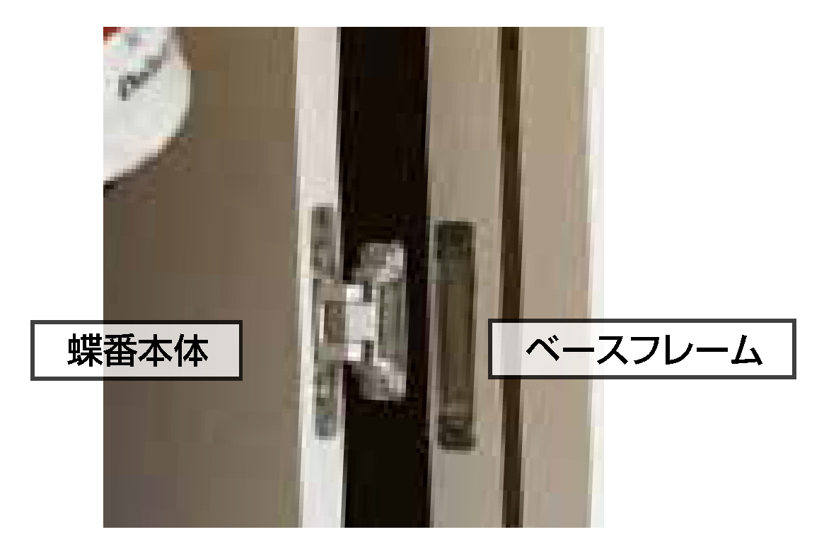 蝶番を本體とベースフレームに分解し、それぞれを扉側?枠側に取り付けてから吊り込む方法です。
