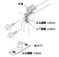 引戸の建付けは吊車と床ガイドにより調整することができます。