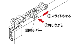 下部調整戸車の上下、前後それぞれの調整ねじを回すと調整ができます。