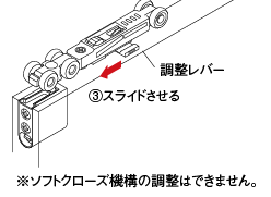 左に回す…吊元側に移動(2mm) - 3調整後、固定ネジを締め付ける。