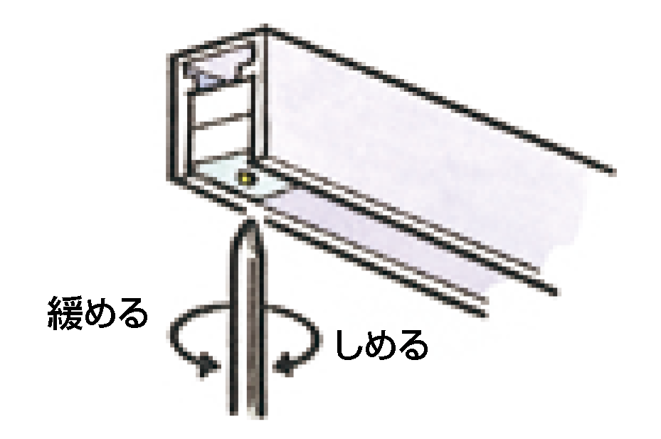開閉の際に戸が枠にあたってしまう時、上下ストッパーを調整しましょう。上下ストッパーを緩めて左右に移動し、所定の位置で固定します。