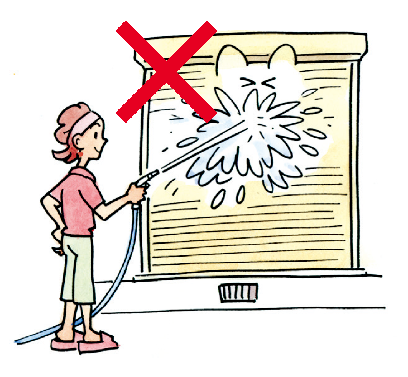 - ■直接ホースで水をかけないでください。漏電や故障の原因となる恐れがあります。