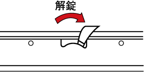通常時はツマミを「解錠」側へずらした狀態で使用してください。