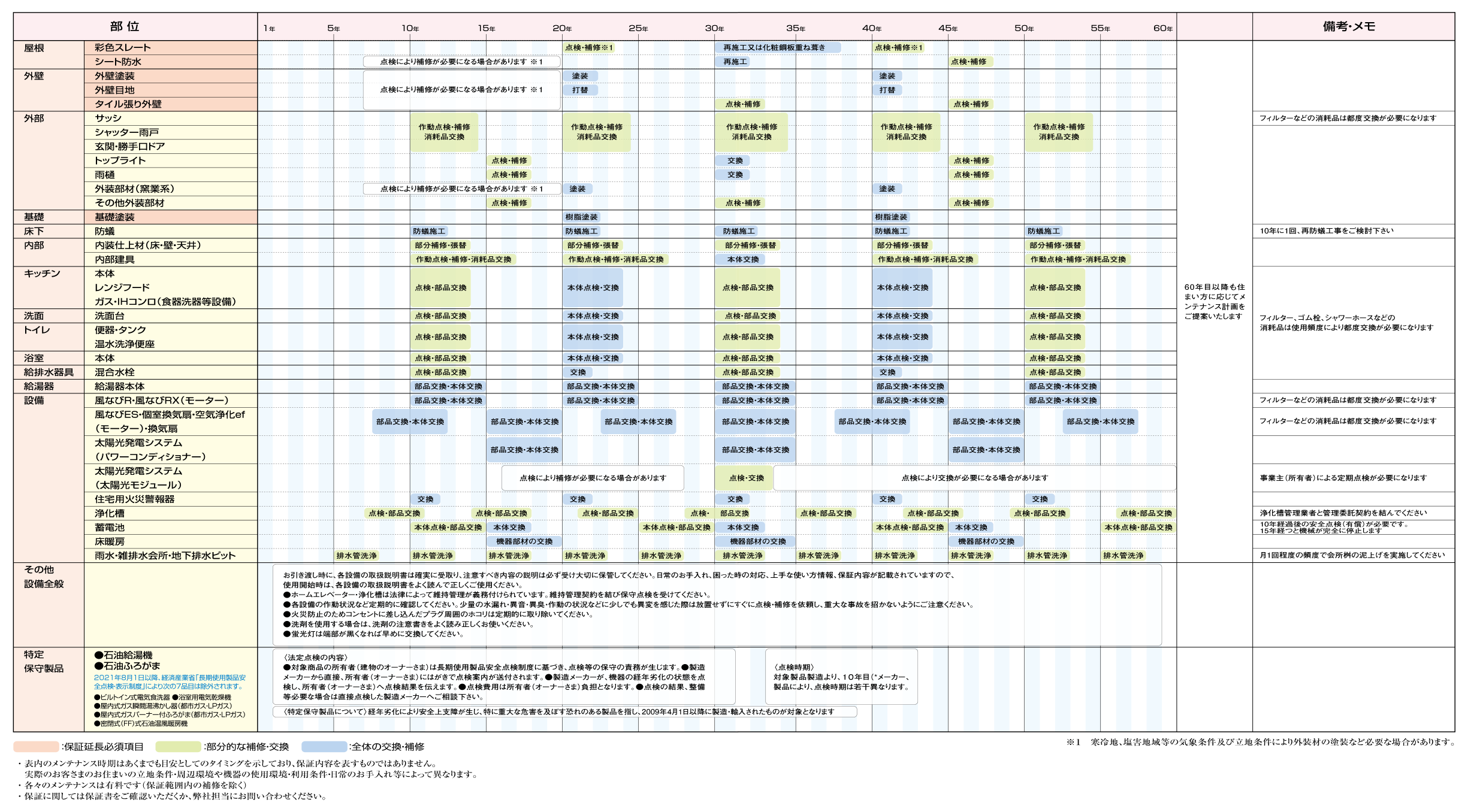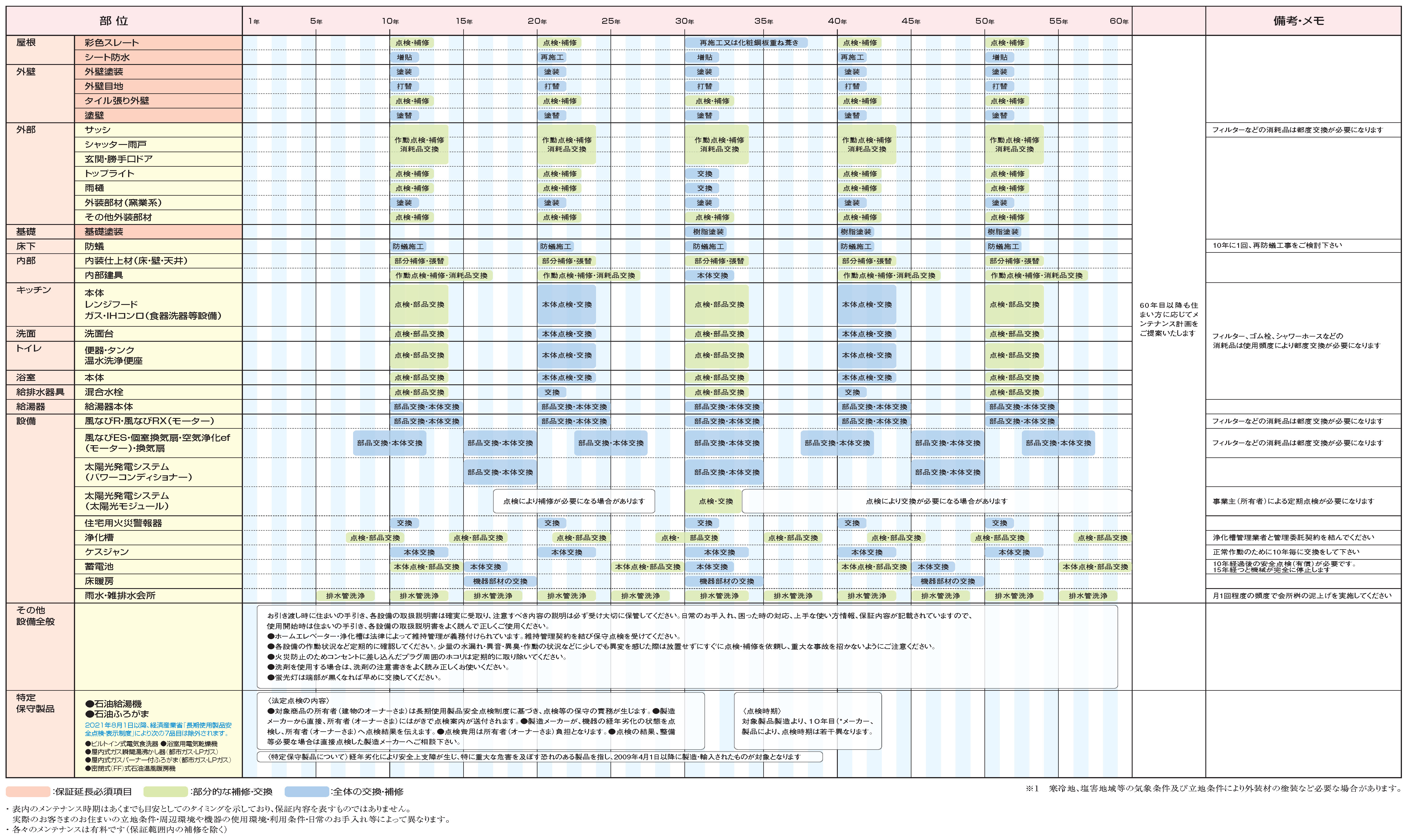 ダイワハウスの保証?點検プログラム AQサポート メンテナンスサイクル <Wood Residence MARE -希- >