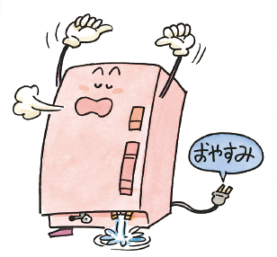 長期の不在などで器具を使用しないときは、電源スイッチを切って、タンク內の水を全部抜いておきます。機種によっては、水抜き方法が異なる場合がありますので、詳しい処置は取扱い説明書をご覧ください。