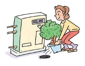 - ■排気口から排気ガスが出ますので、近くに危険物、植木、ペット、その他加熱されると危険なものは置かないようにしましょう。