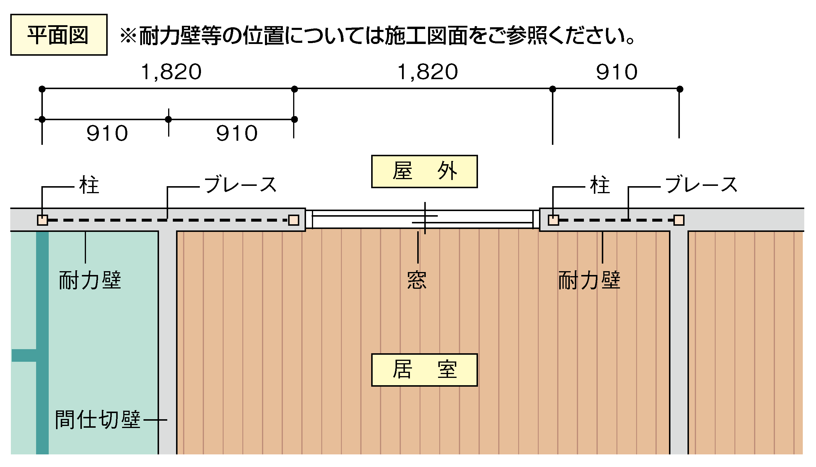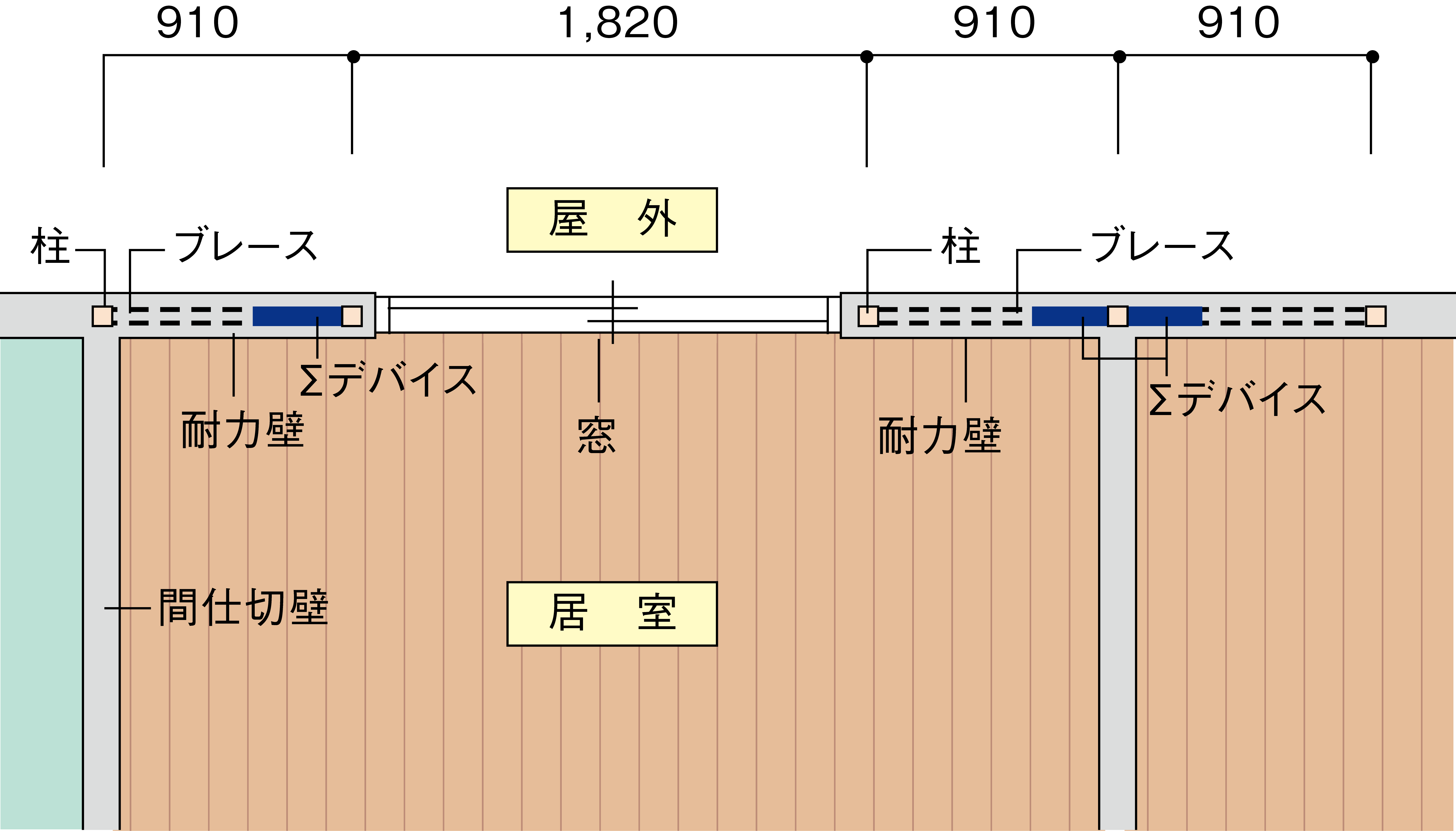 ●中央:【xevoΣ 耐力壁】の場合(Σ形デバイスが室內から見て右側の場合)