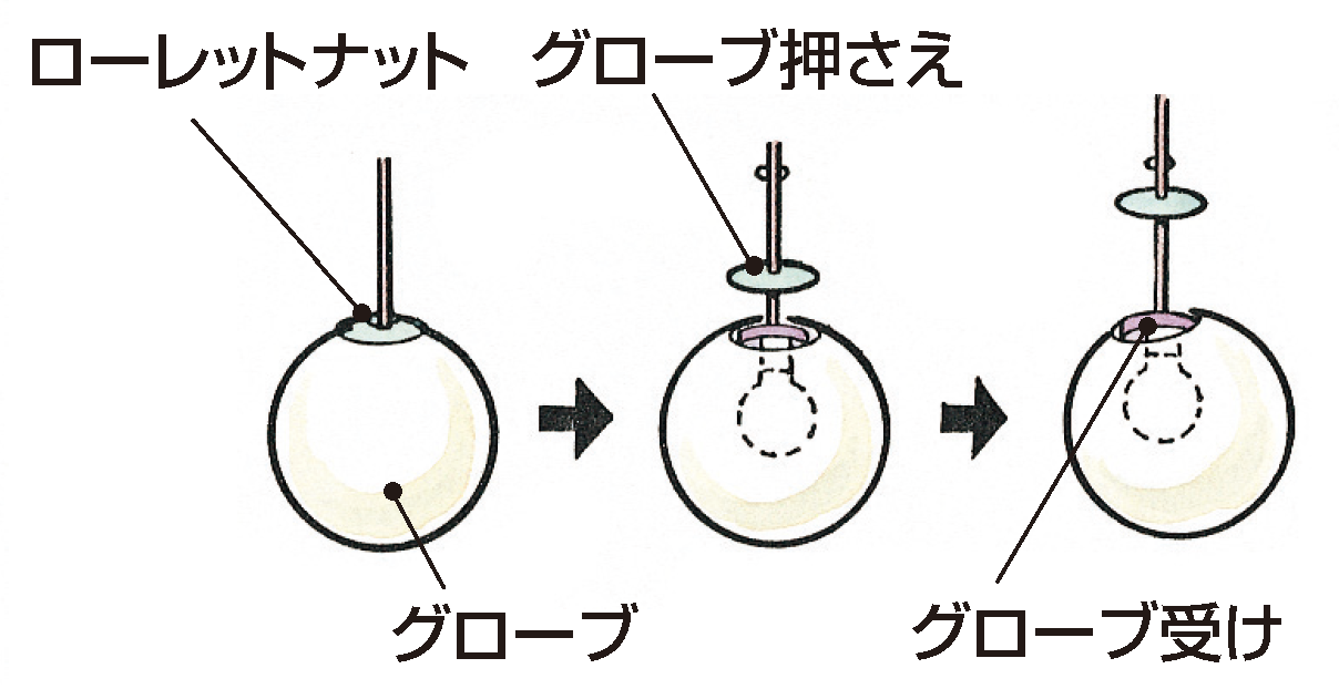 ローレットナットをゆるめ、グローブを少し斜めにしてグローブ受けから取り外します。