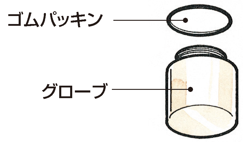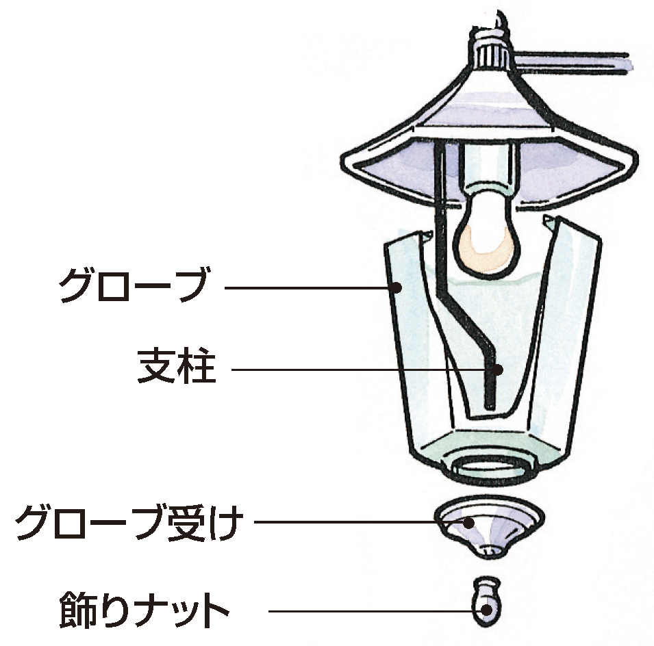 飾りナットをゆるめてグローブ受けとグローブを取り外してください。