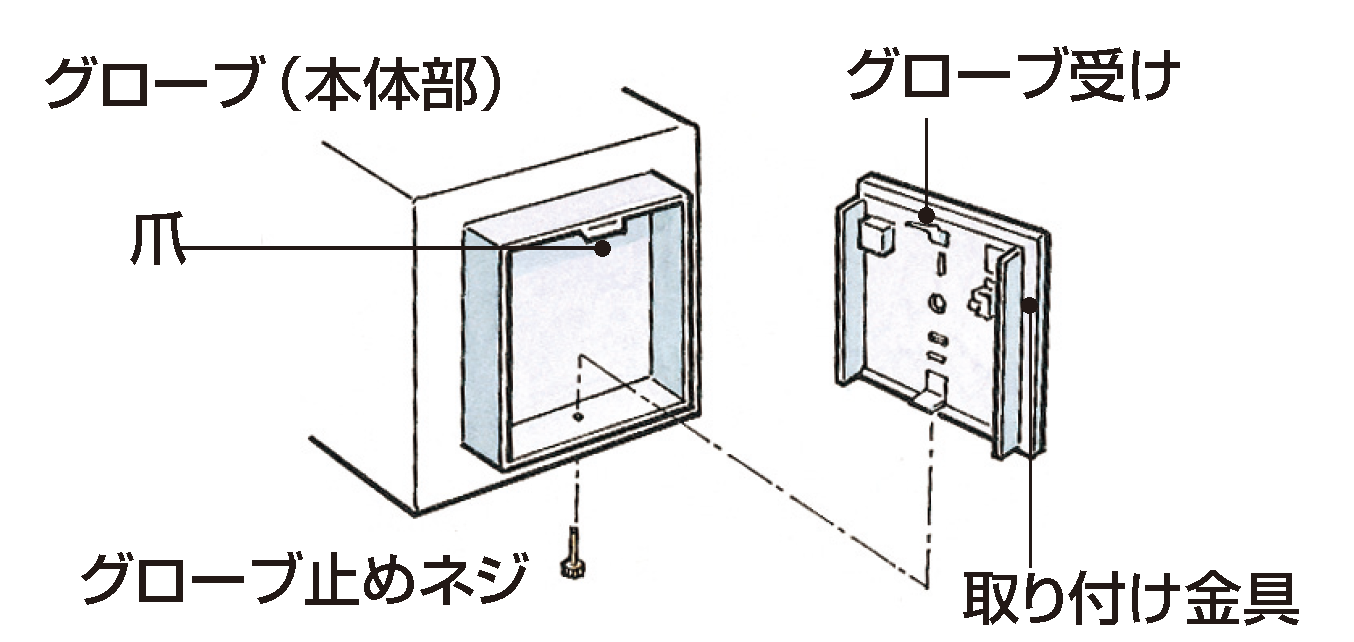 化粧ネジをゆるめてグローブを本體の爪から取り外します。