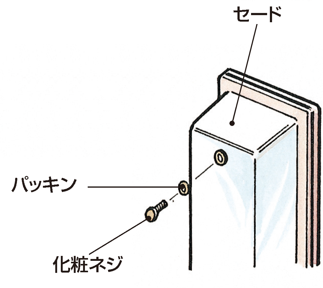 セードの上部についている化粧ネジをゆるめると外れます。ネジの下のパッキンを紛失しないように注意しましょう。