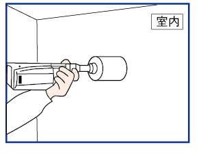 - ■ エアコン用スリーブをあける場合は、ホルソー等を使用し、室內側より穴あけしますが、石膏ボードをくり抜くと防濕シートが表われますので、カッターナイフ等でカットしてから穴あけをしてください。※カットせずにホルソー等で穴あけ作業を行うと、防濕シートが破損する恐れがあります。