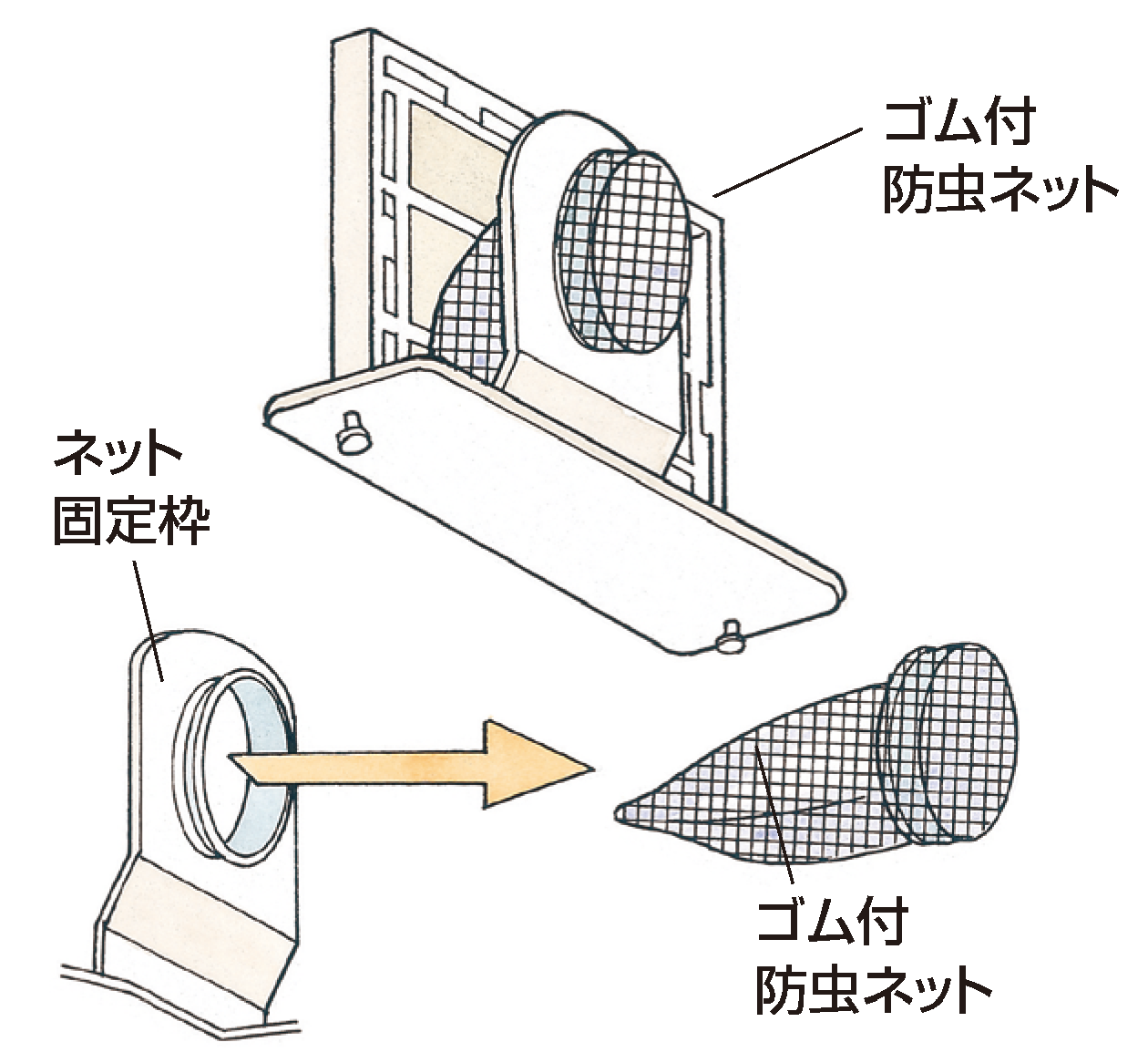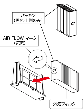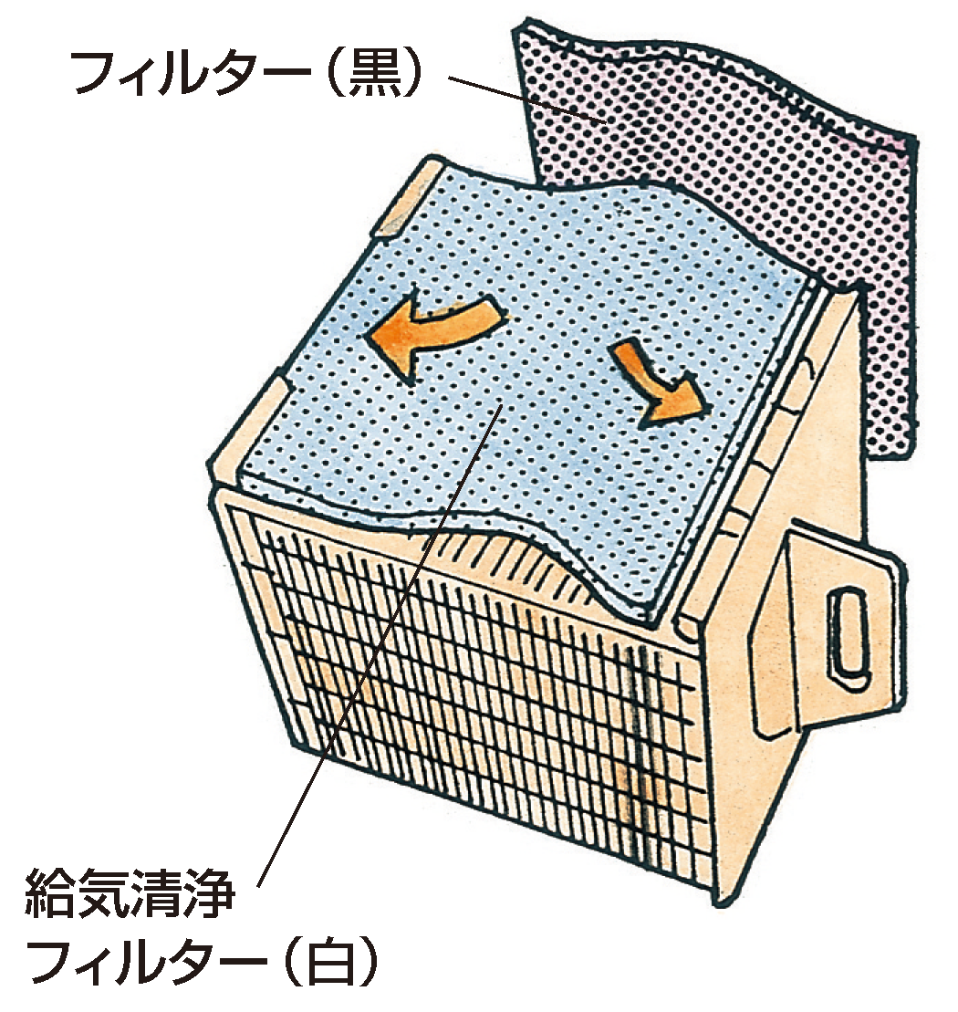 • フィルター枠とフィルターとの間にすき間ができないように取付けてください。すき間があると蟲などが侵入するおそれがあります。
