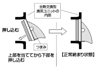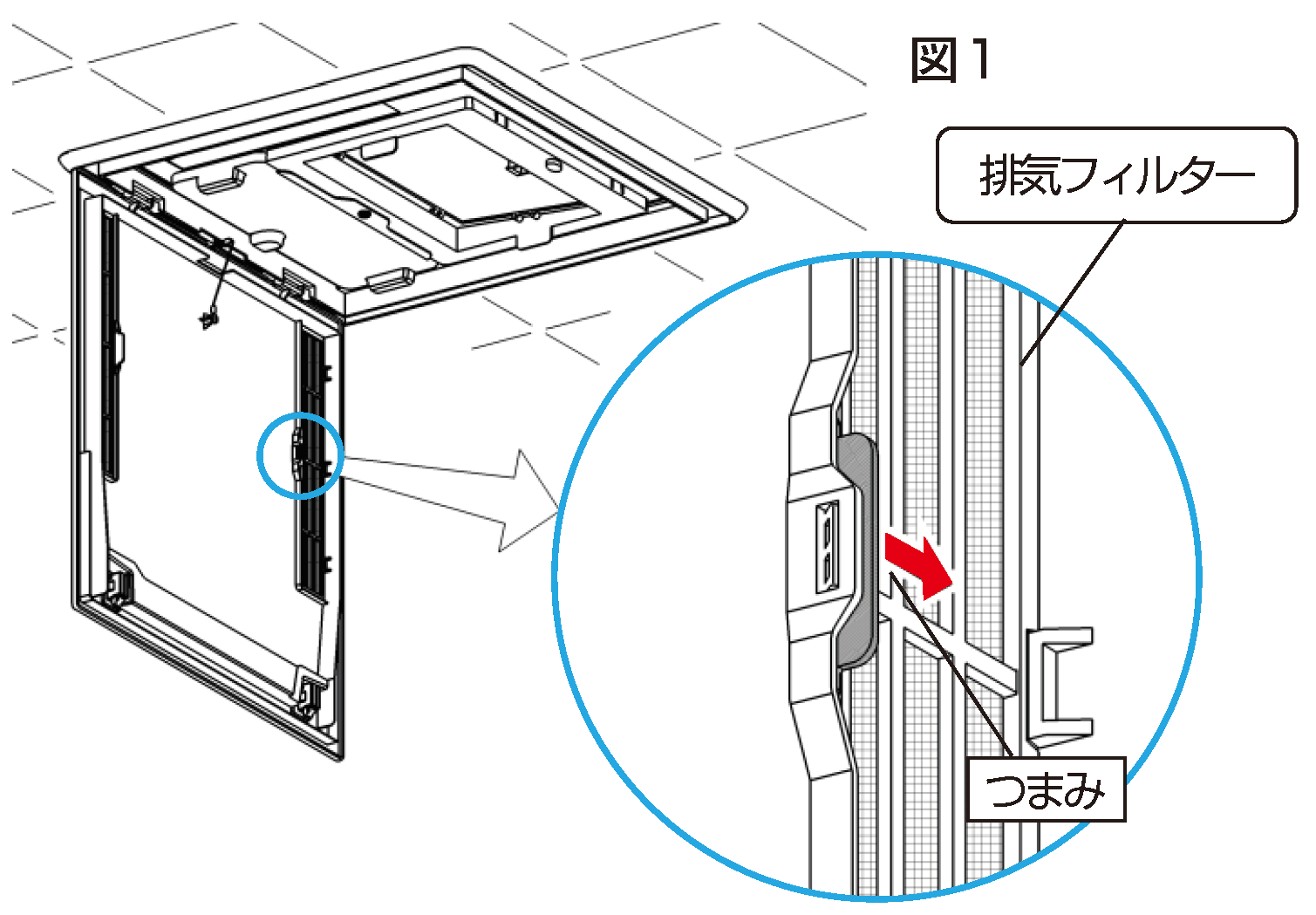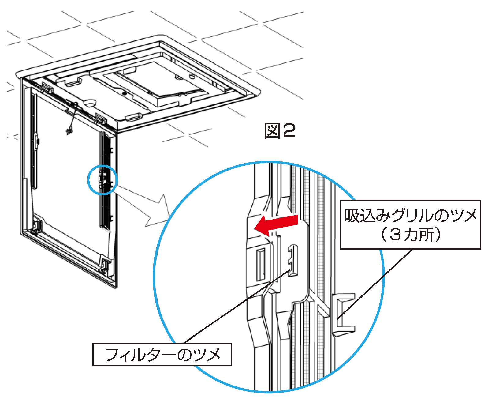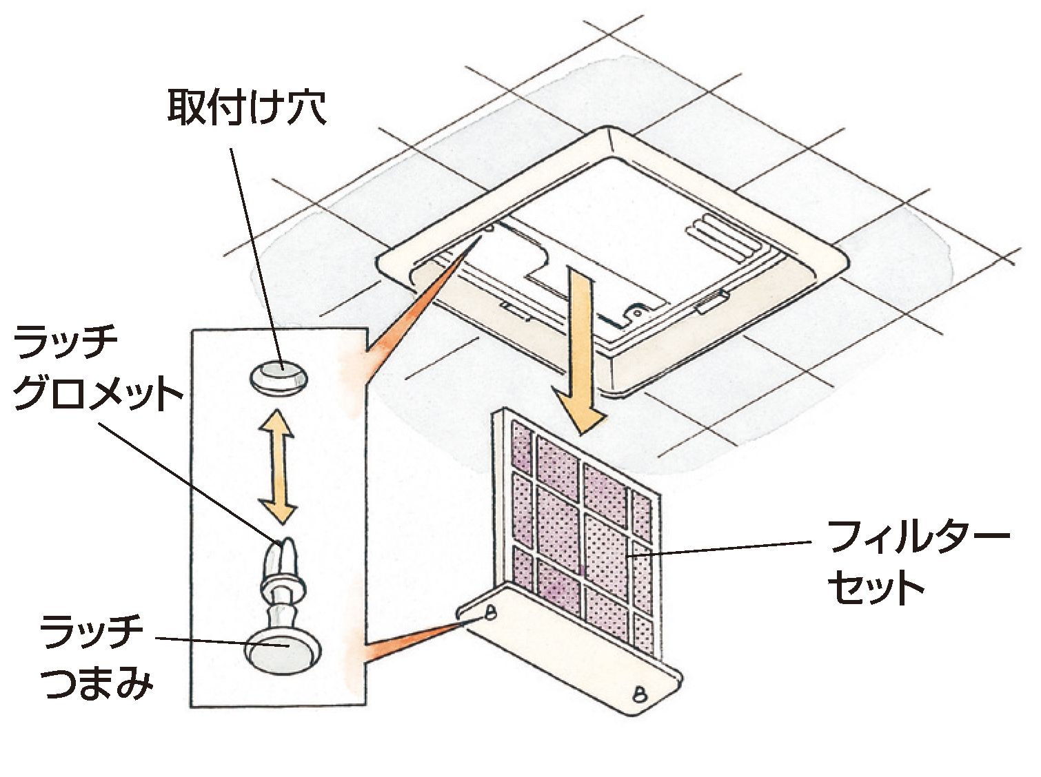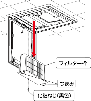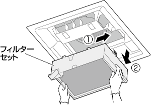 • フィルター枠をはずす際に、水滴が垂れたり、ほこり、蟲などが落ちてくる場合がありますので、注意してはずしてください。