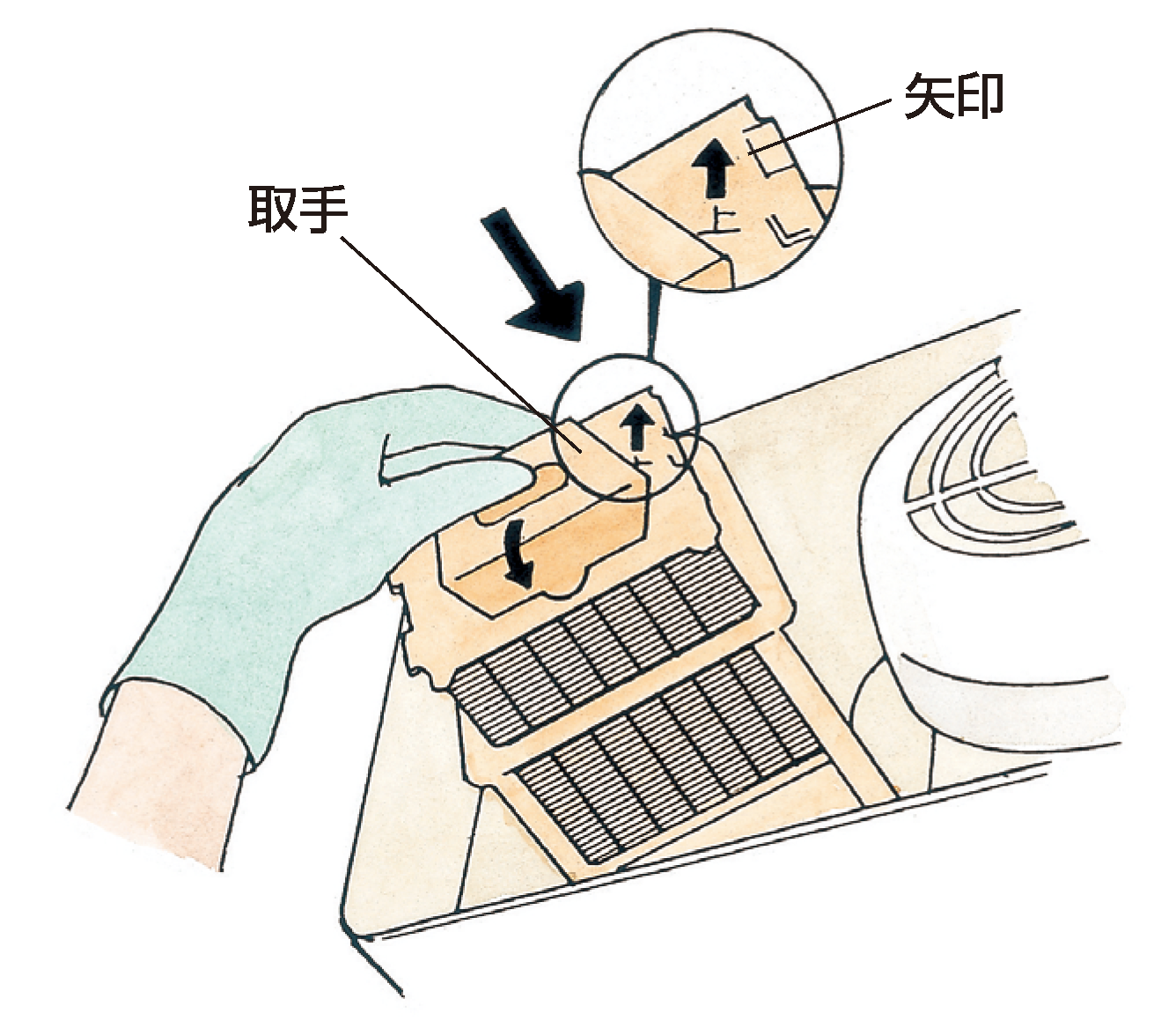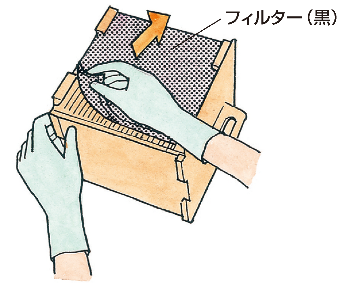• 4フィルター枠を矢印の方向に開き、フィルターを取り出してください。