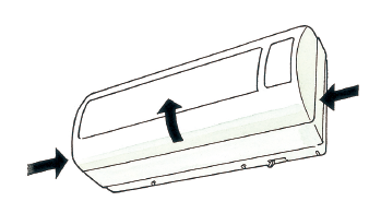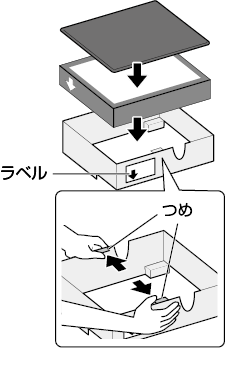 • 2ドレン受けのつまみを矢印の方向につまんで下に引き、フィルター枠を本體からはずしてください。