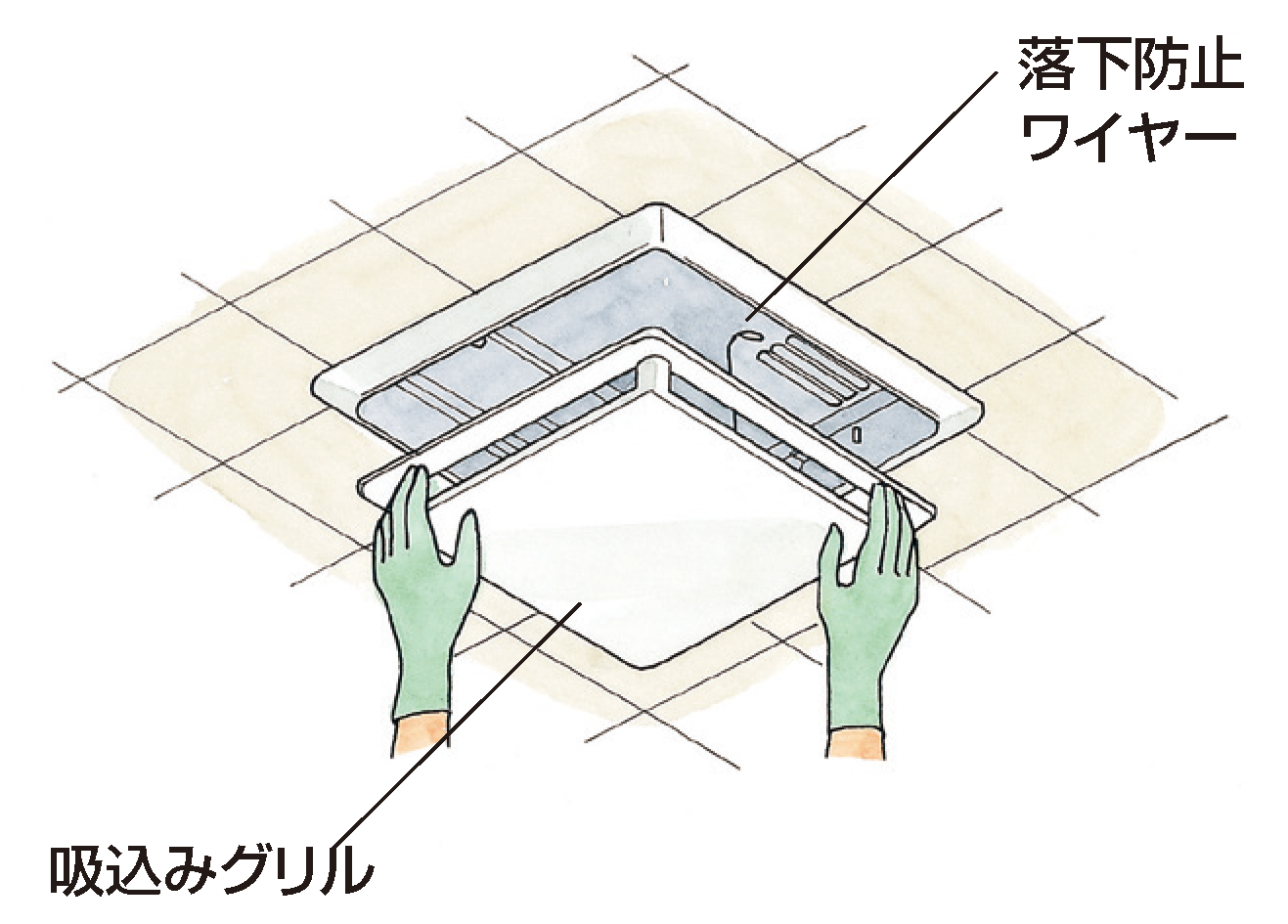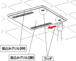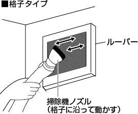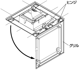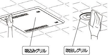 • グリルにほこりが付著すると、風量低下や異常音発生の原因となりますので、約3ヶ月に1度を目安としてグリルを清掃してください。