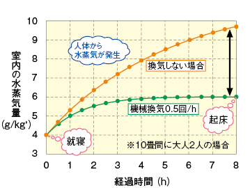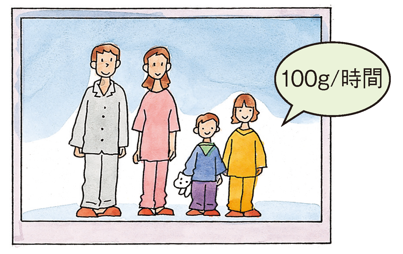人體からは一晩で1人あたり200cc程度の水蒸気が発生します。そのため、結露が生じやすい狀態になり、外気溫度が低下する明け方などに結露が生じる場合があります。特に、お子さまが小さいご家庭など複數人で就寢する場合は注意が必要です。換気をしっかり行い、暖房で室溫を高めるなどの工夫が効果的です。