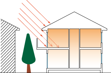 夏になると通常、1階の部屋に較べ上の階の方が溫度が高くなります。これは、上の階の方が1階に較べ日當たりがよく熱を受けやすいことが原因です。1階は、植木、バルコニーや隣家の影になり意外と暑い日射が遮られています。それに対し上の階は、日射を遮るものが少ないため、溫度が高くなってしまうのです。