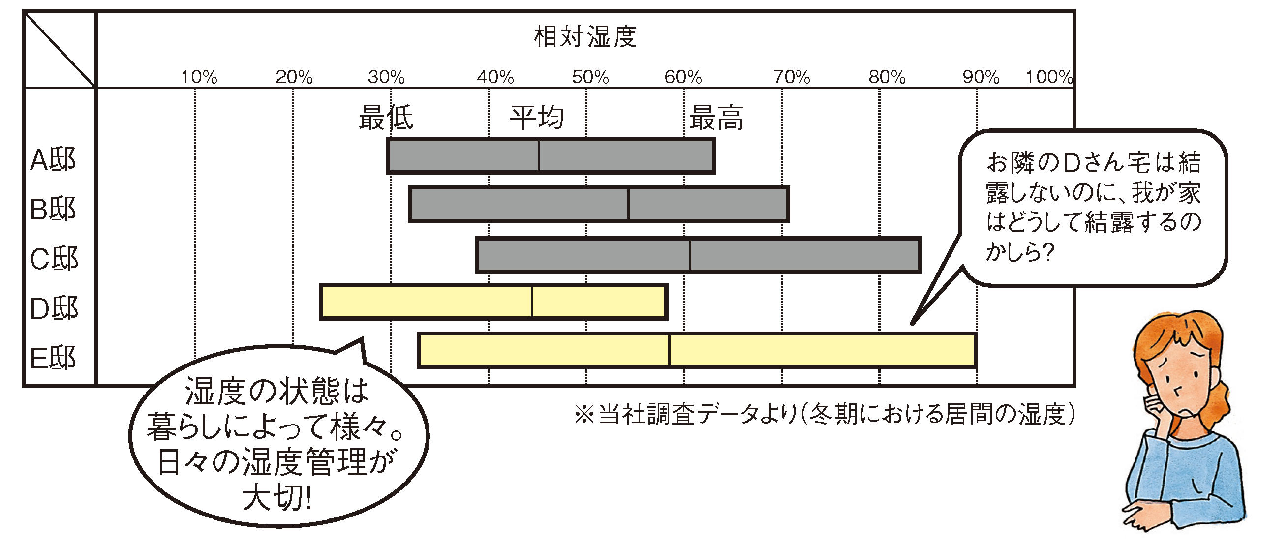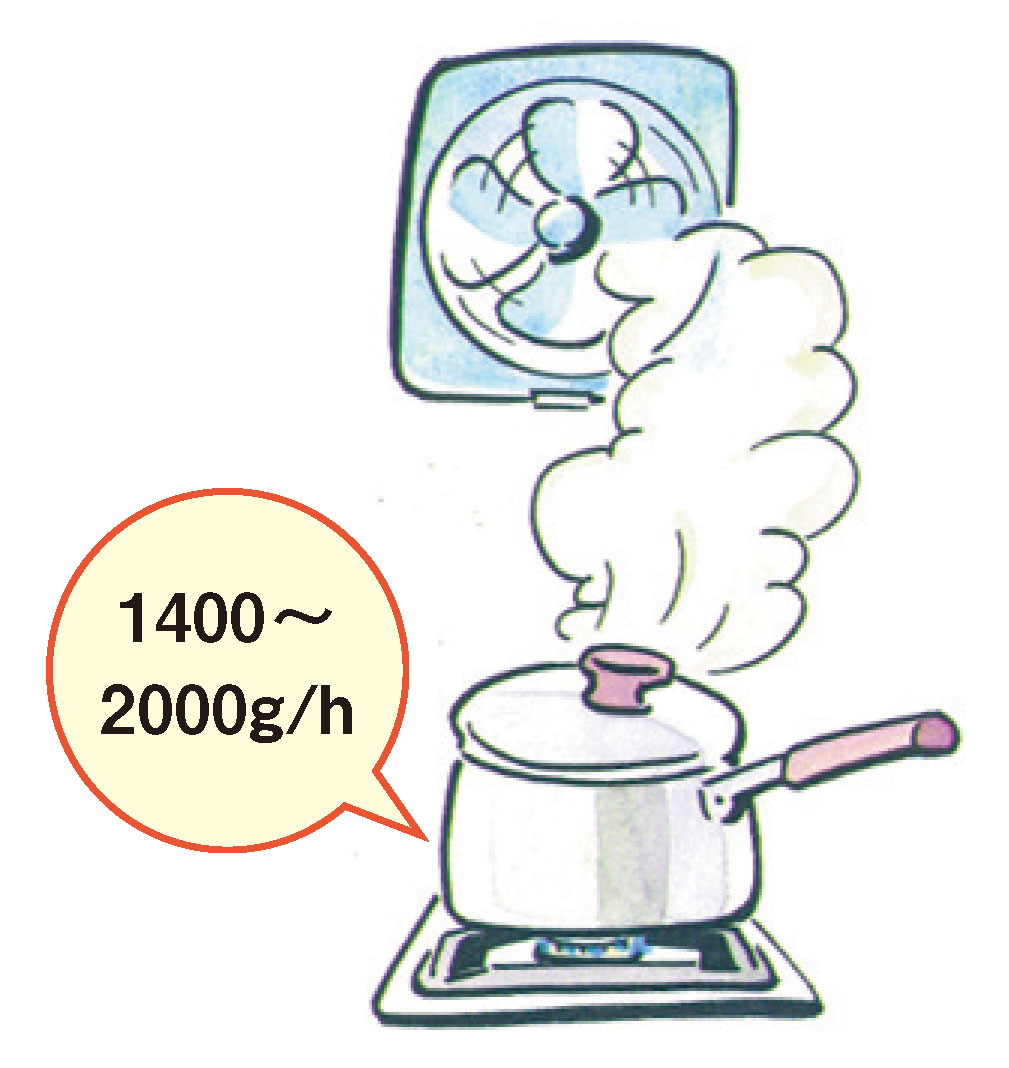 室內の濕度狀況は、住まい方による水蒸気の発生量によって大きく差があり、結露の発生に影響します。