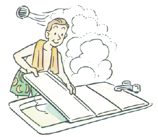 • 浴室は入浴後必ず換気扇を回しましょう。入浴中もできるだけ換気扇を回したいものです。(入浴後は浴槽のお湯を排水してください。排水しない場合はかならずふたをしてください。換気も忘れずに。)