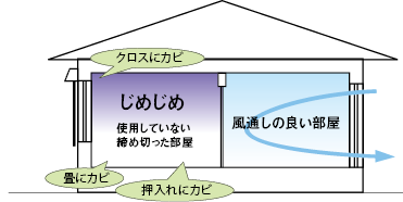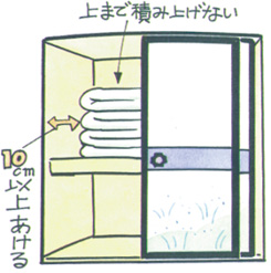 • 押入れの収納物は壁から離し、襖を時々開け放し空気の流れをよくしましょう。