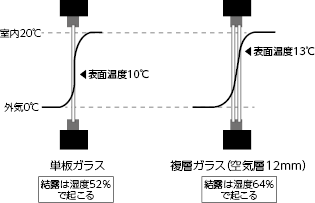 • シングルガラス(単板ガラス)…も複層ガラスも結露します。