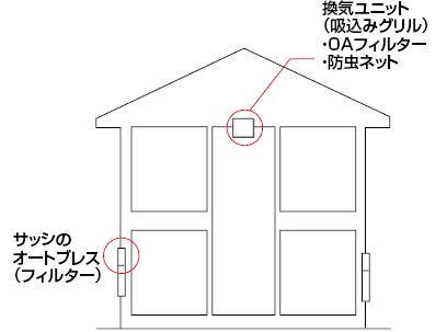 フィルターはホコリや花粉といった粒子の大きなモノは除去できますが、細かいスス狀のモノは通過する場合があります。幹線道路沿いなど、外気の汚れが気になる場合は、空気清浄機のご使用をおすすめします。