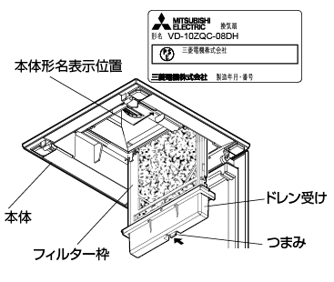 • ドレン受けの內部に水滴が溜まっている場合がありますので注意してください。