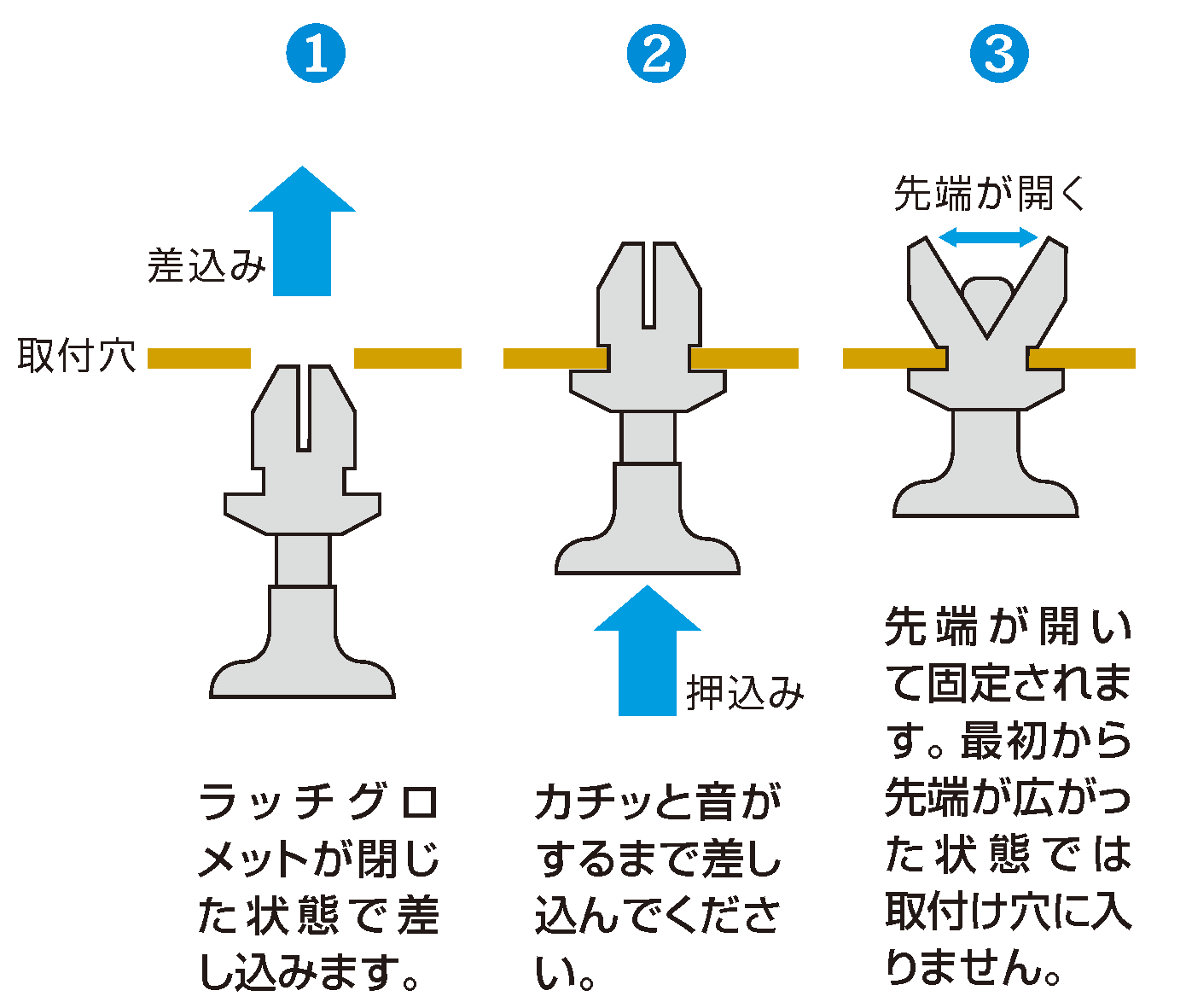 • 各部品の取付けは確実に行ってください。機器の性能低下の原因や、落下によるケガや破損の原因となります。