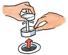吸引カップ同様、水の圧力でつまりを取り除きます。カップ部分を排水口にあてて強(qiáng)く押し、圧力をかけます。