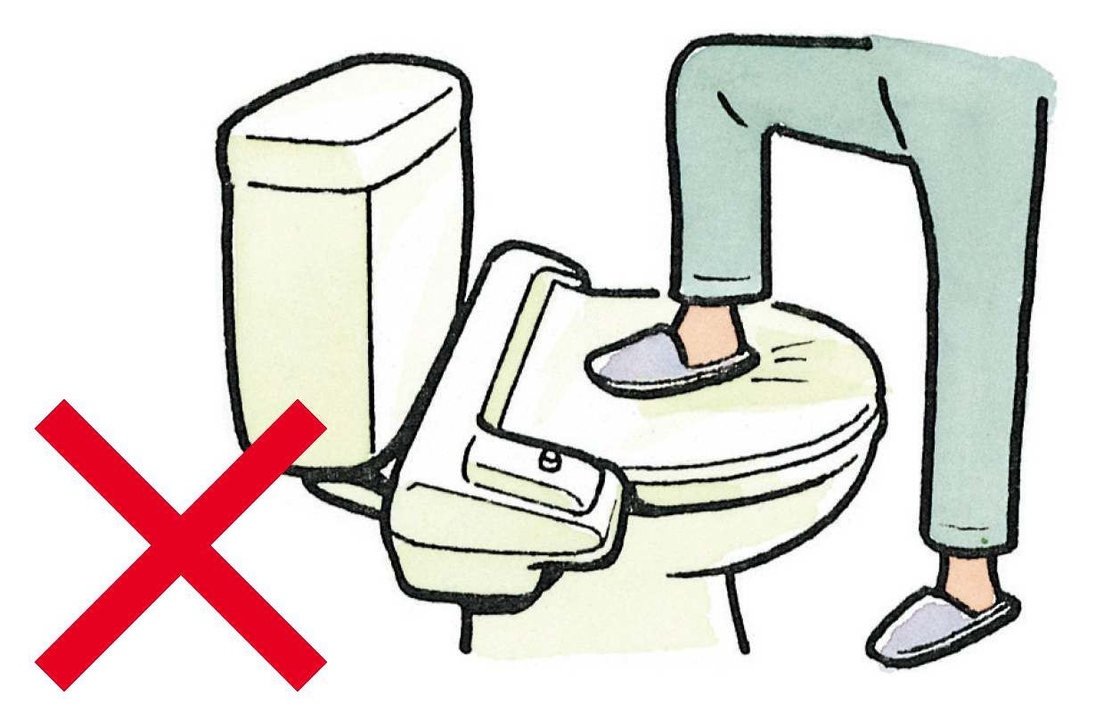 新聞紙、紙おむつ、ティッシュペーパー、おそうじシートなど、トイレットペーパー以外のものは絶対に流さないようにしましょう。(メーカーによっては流せないお掃除シートがあります。)便座の蓋や本體は大切に扱ってください。踏み臺にしたり、重いものを載せたり、開閉を亂暴に扱うのはやめましょう。また、誤って異物を落とした場合は、そのまま水を流すと便器が詰まります。汚水が溢れて、床を汚すことがありますので必ず取り除いてください。