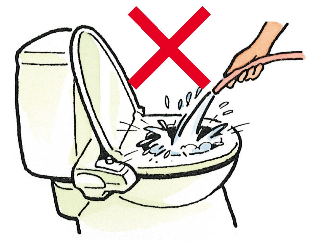 - ■クレンザーや研磨材の入っている洗剤は、本體ケースや便座などを傷つけます。