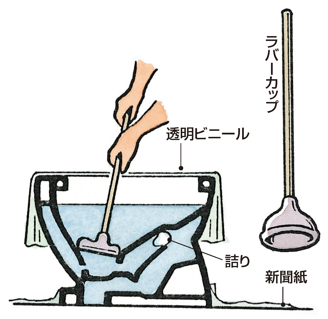 まず、汚水が飛び散るのを防ぐため、床に新聞紙を敷きます。この後、小さな穴を開けた、透明のビニールシートを便器にかぶせ、ラバーカップのもち手が通るようにします。カップは便器の穴に當(dāng)て、透明ビニールは便器を覆うように広げてください。ラバーカップをゆっくりと押し、その狀態(tài)から一気に引き上げましょう。詰まっていた汚物が吸引されて出てきますので取り除いてください。また、便器に強(qiáng)く押しすぎるとかえって汚物を詰まらせることがあるので注意しましょう。