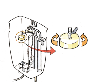浮き玉が正しい位置に浮き上がっていない場合は、浮き玉を回転させて、満水時の水位を引き下げるようにしてください。浮き玉を右へ回転させると、水位が下がります。
