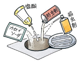 - ■浄化槽內(nèi)のバクテリアが死にますので塩酸、カセイソーダ、殺蟲剤、防蟲剤などの薬品は、絶対に使用しないでください。