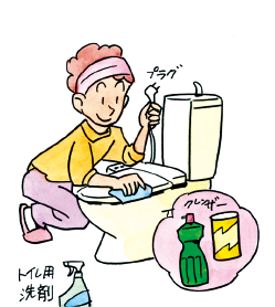 - ■トイレ用洗剤は揮発性ガスにより、溫水洗浄便座をいためることがあります。てぎわよく短時間にお手入れをしましょう。