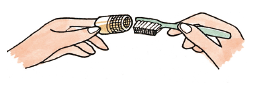 髪の毛や糸クズ等が流れてしまうのを防ぐヘアキャッチャーにゴミがたまると、水の抜けが悪くなるので、こまめにおそうじしましょう。排水栓を上に引き抜き、ヘアキャッチャー部分についているゴミを古歯ブラシなどで取り除いた後は、元どおりにはめ込んでおきます。