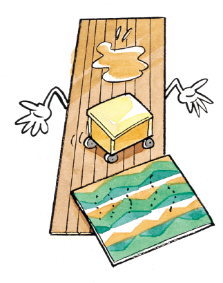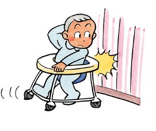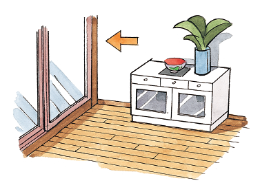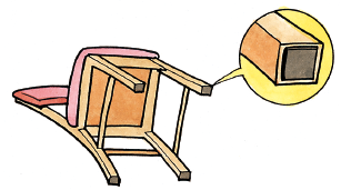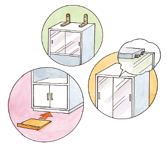 - ■家具の底面にくさびのような固定材を敷いて、ぐらつきをおさえる。またはゴム板を敷いた上に家具を置く。