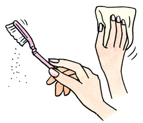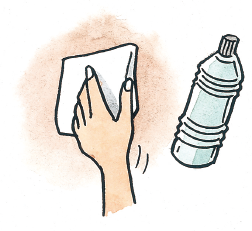 - 1洗剤を入れたぬるま湯に浸した布でたたいて濕らせます。