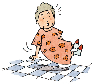 - ■水ぬれや砂が飛散した狀態では、滑りやすくなり転倒事故を招く可能性がありますのですぐに取り除きましょう。