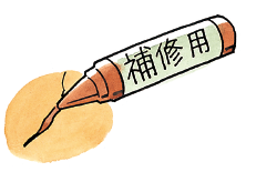 スリキズ程度ならフロアと同色の補修用クレヨンをキズにすり込みます。その後、余分な所を乾いた布で拭き取ってください。
